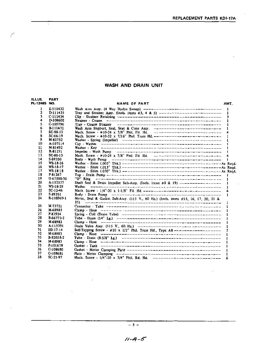Parts for Kitchenaid KDI17A: 05 - Section Parts