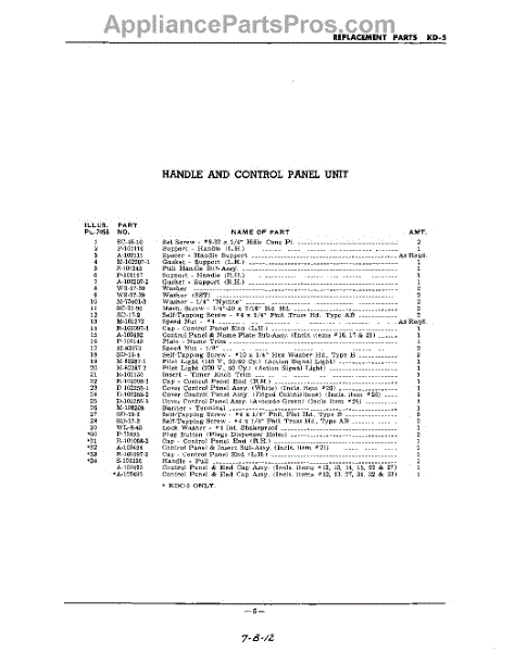 Parts for Kitchenaid KDY5: 05 - Section Parts