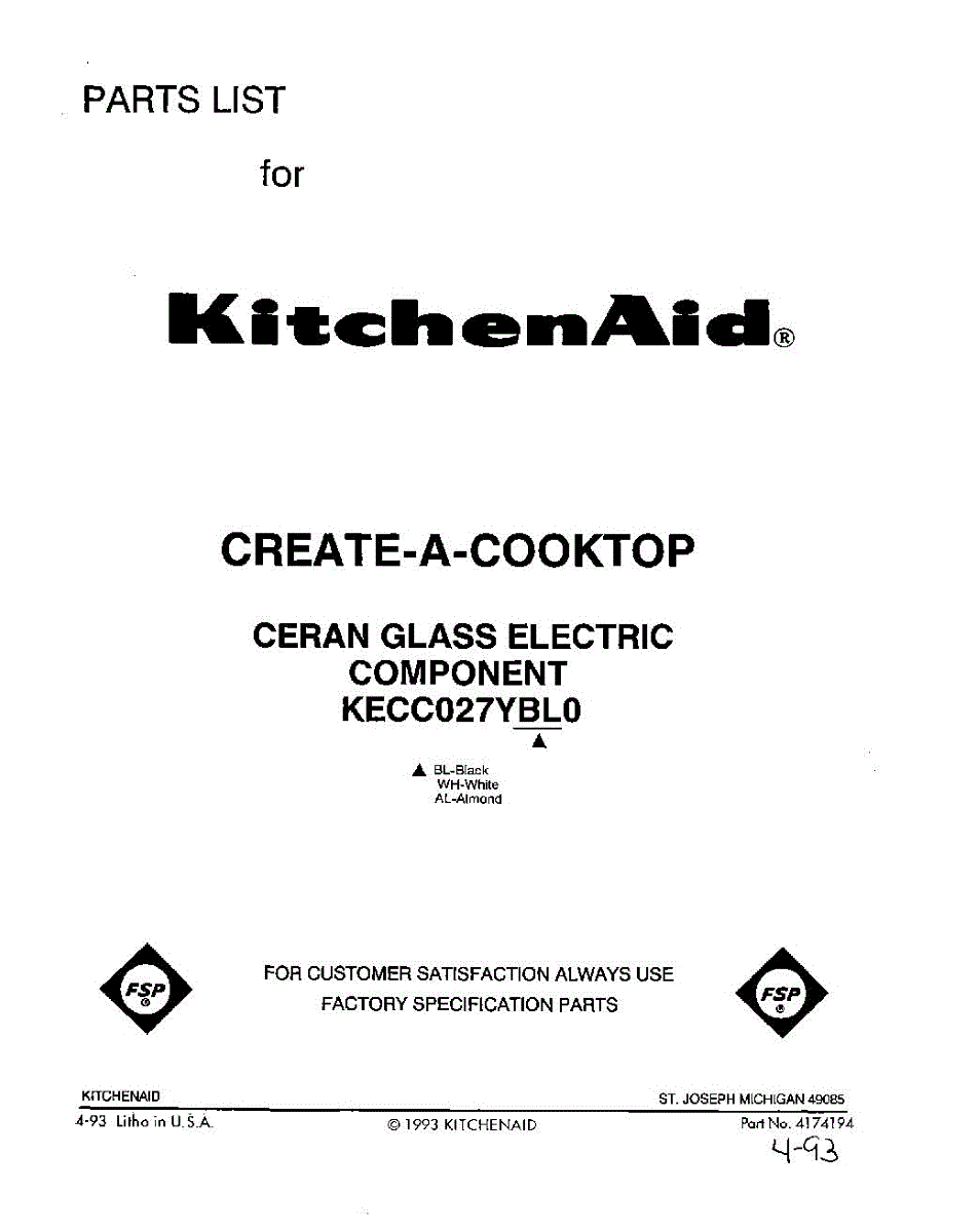 Kitchenaid Cooktop Parts