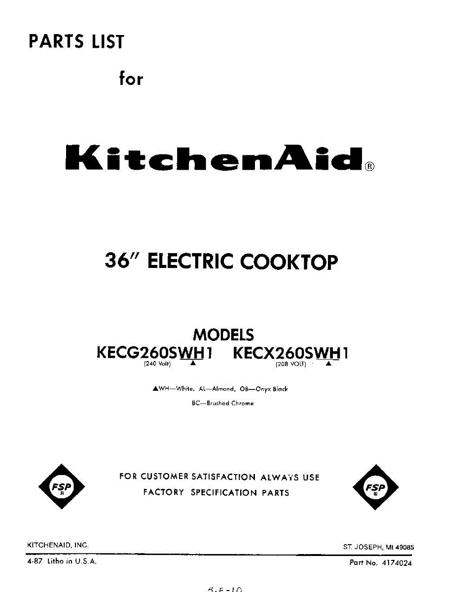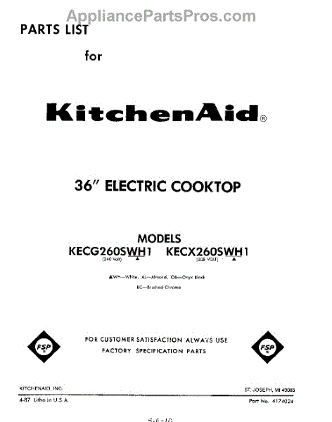 Kitchenaid Cooktop Parts