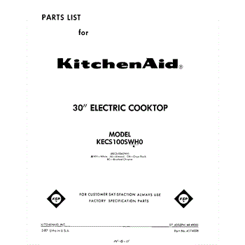 Parts for Kitchenaid KECS100SWH0: 01 - Section Parts