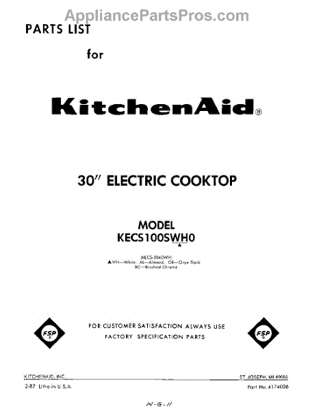 Parts for KECS1040WH