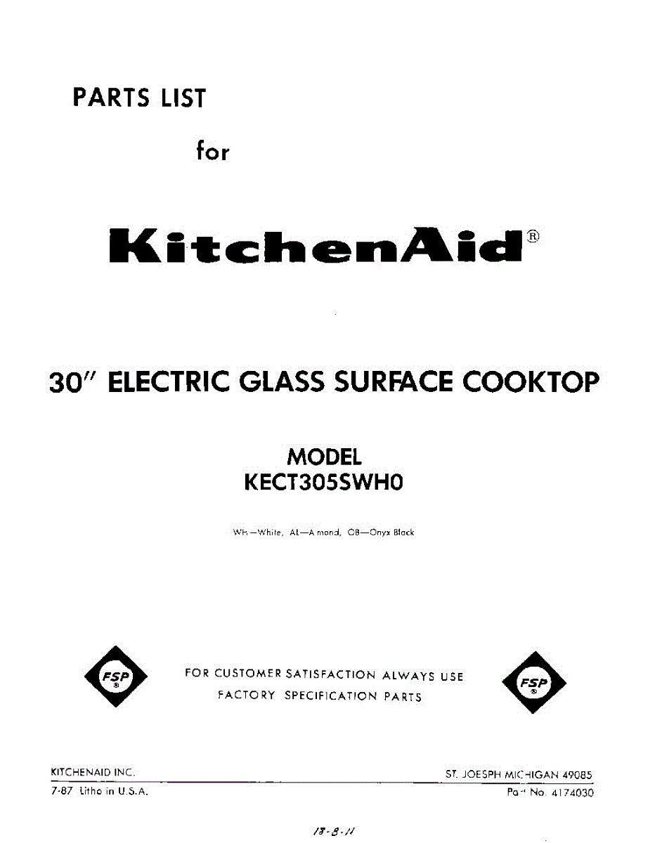 Kitchenaid Cooktop Parts