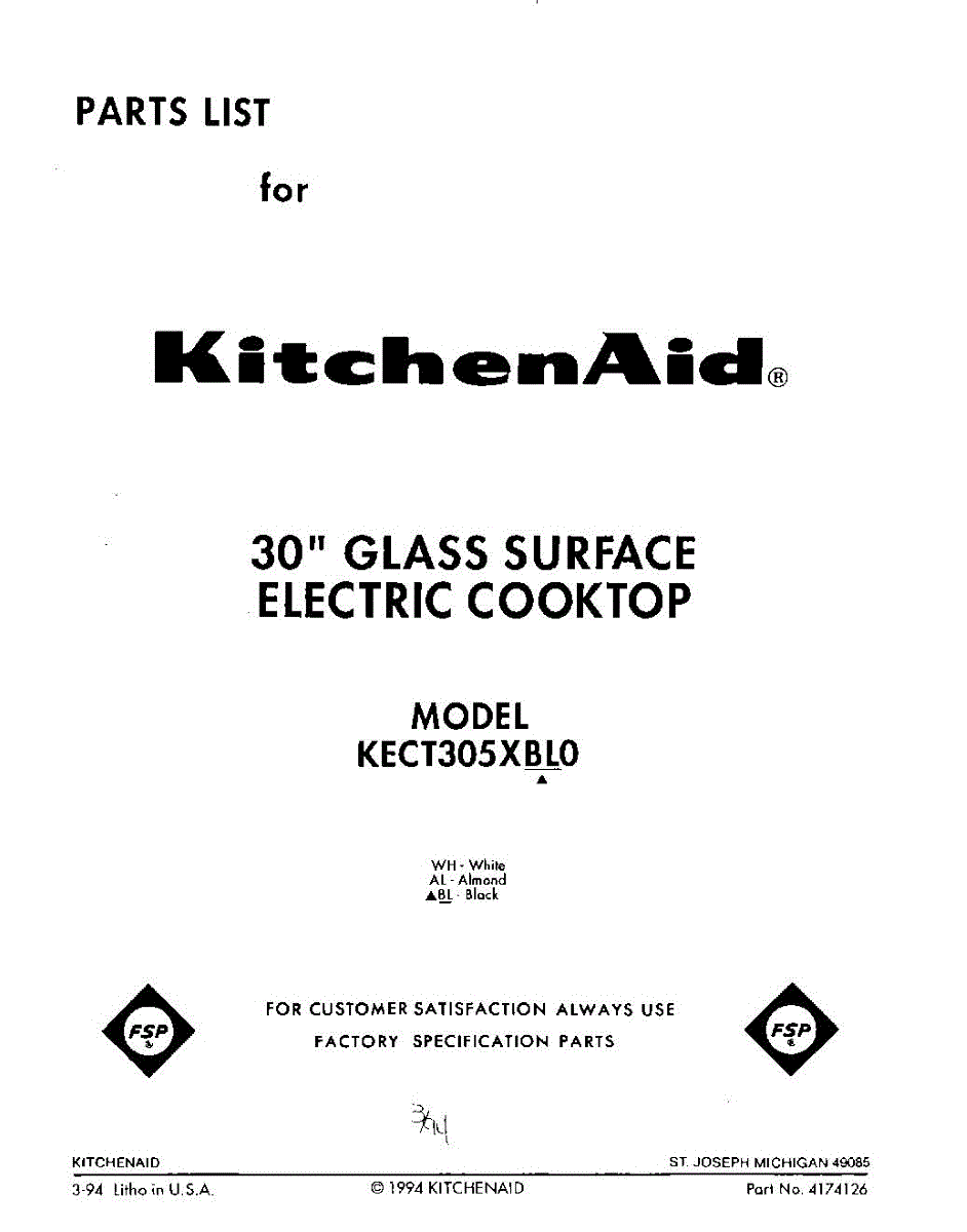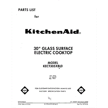 Parts for Kitchenaid KECT305XAL0: 01 - Section Parts