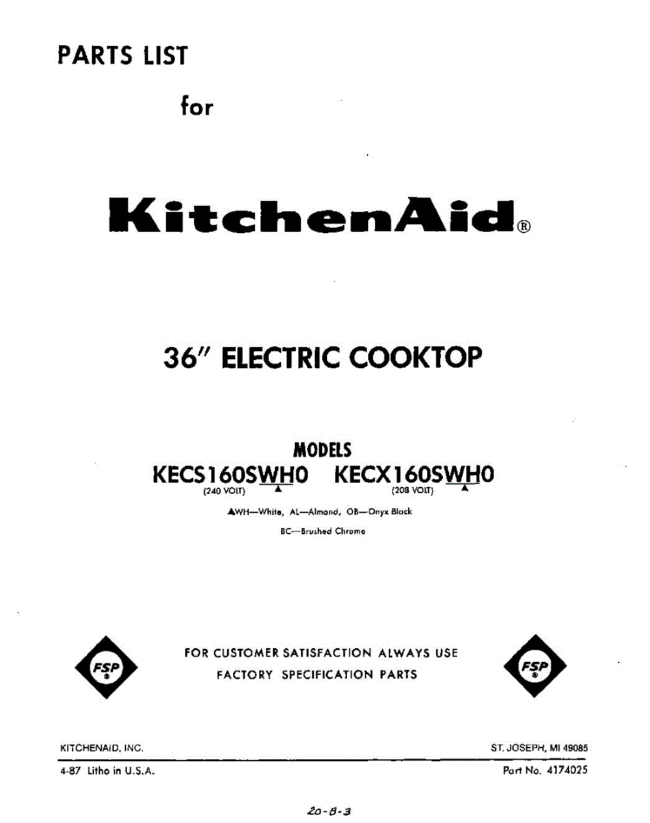 Parts for Kitchenaid KECX160SWH0: 01 - Section Parts