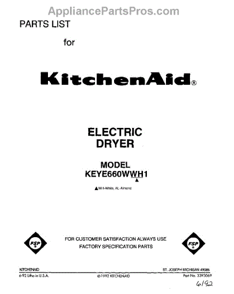 Kitchenaid Dryer Parts