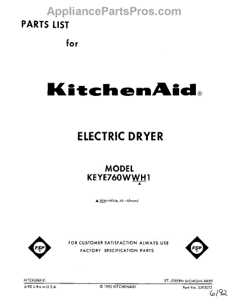 Kitchenaid Dryer Parts
