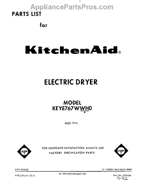 Kitchenaid Dryer Parts