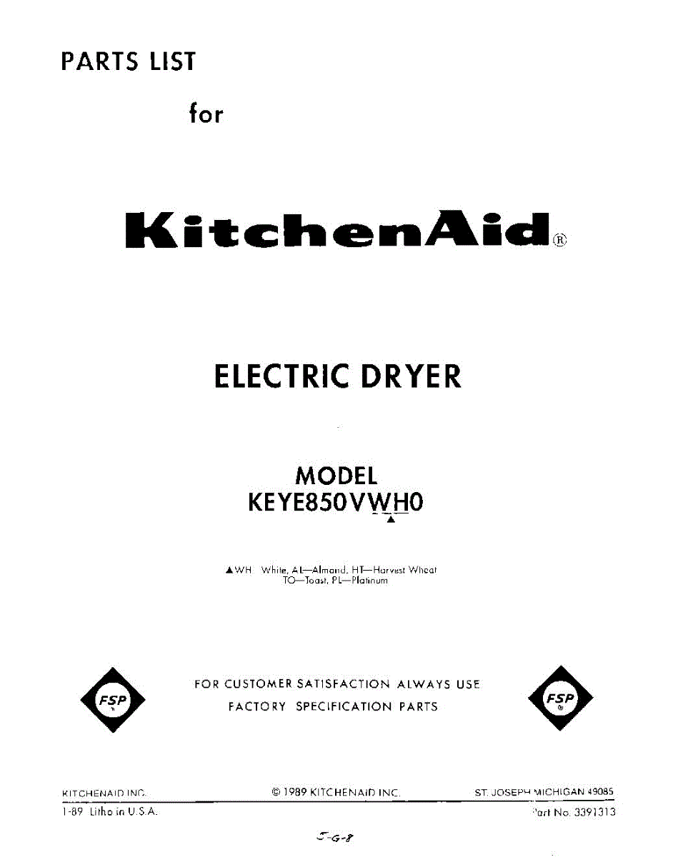 Kitchenaid Dryer Parts