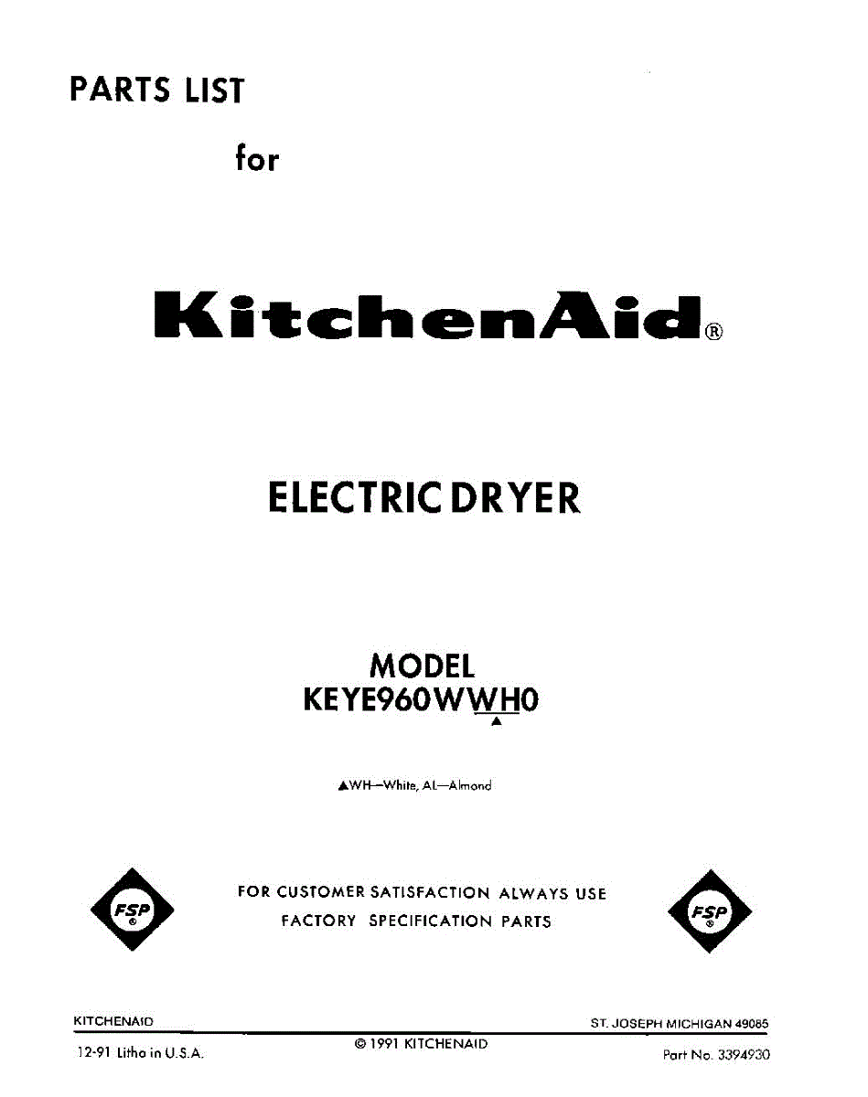 Kitchenaid Dryer Parts