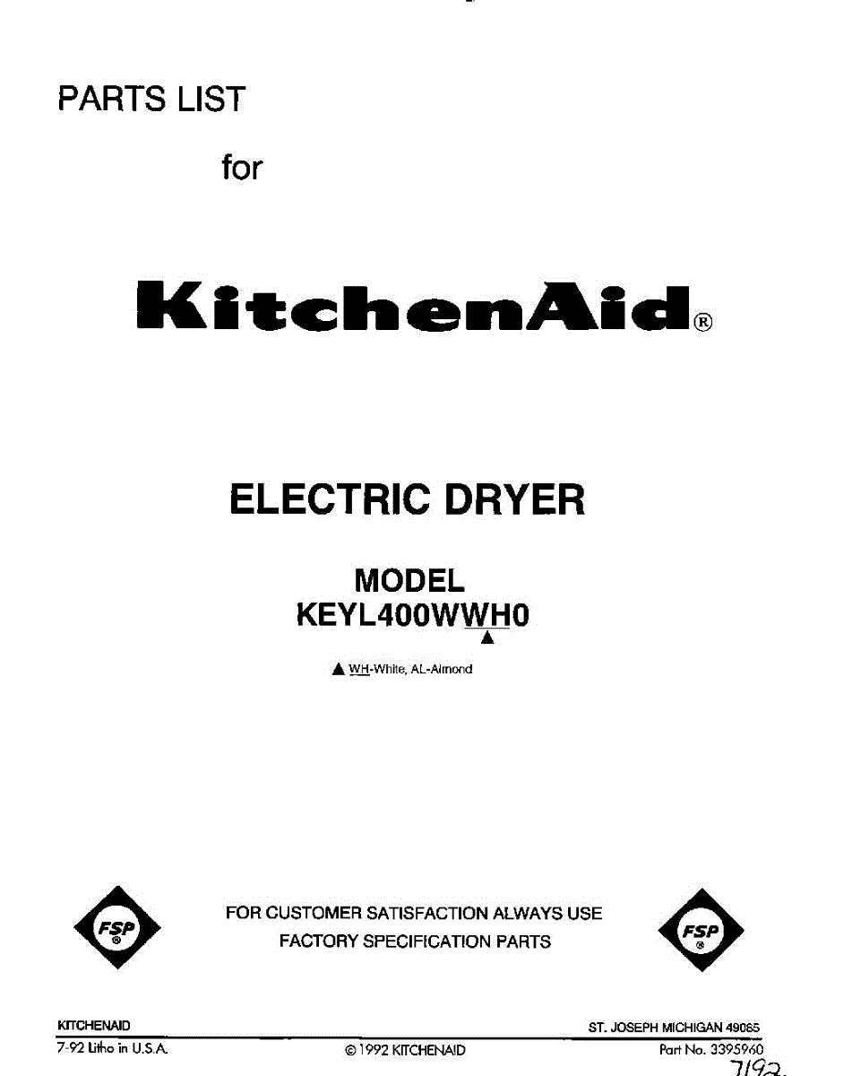 Kitchenaid Dryer Parts