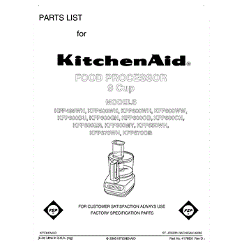 Parts for Kitchenaid KFP600WH: 01 - Section Parts
