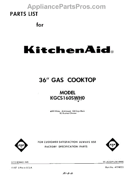 Parts for KGCS160SWH0
