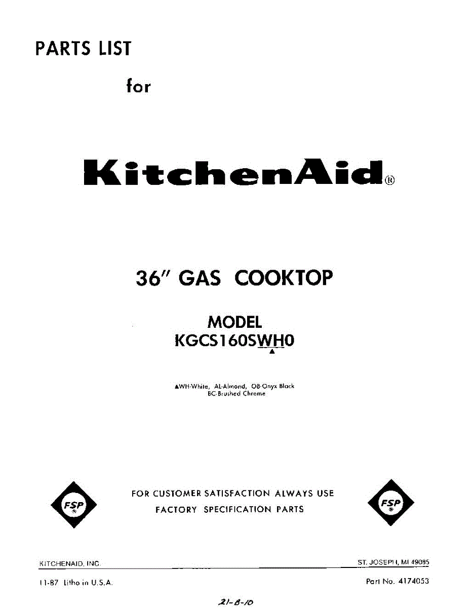 Kitchenaid Cooktop Parts