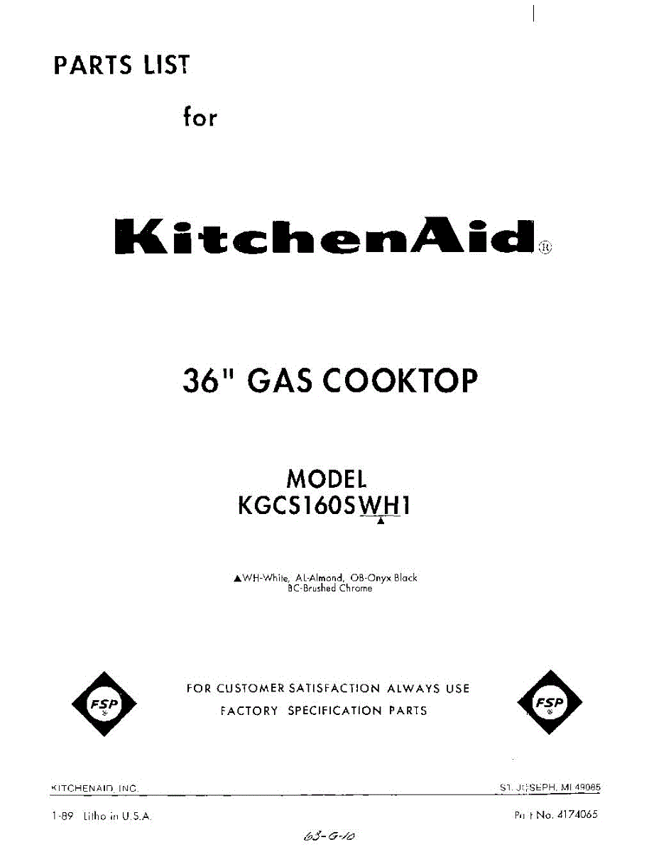 Parts for KGCS160SWH1