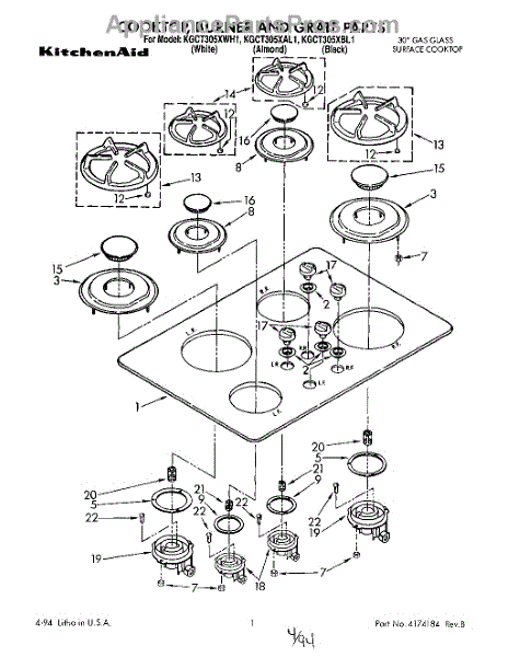 Parts for Kitchenaid KGCT305XAL1: 01 - Section Parts