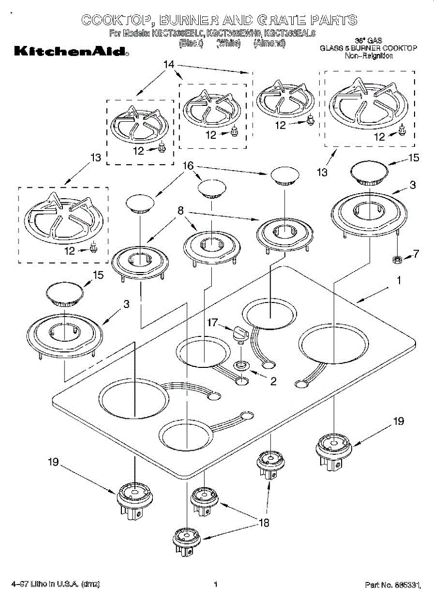 Replacement foot pad kit for range grates. Installs underneath grate legs to cushion and stabilize. Replace when worn, cracked, broken, or missing.