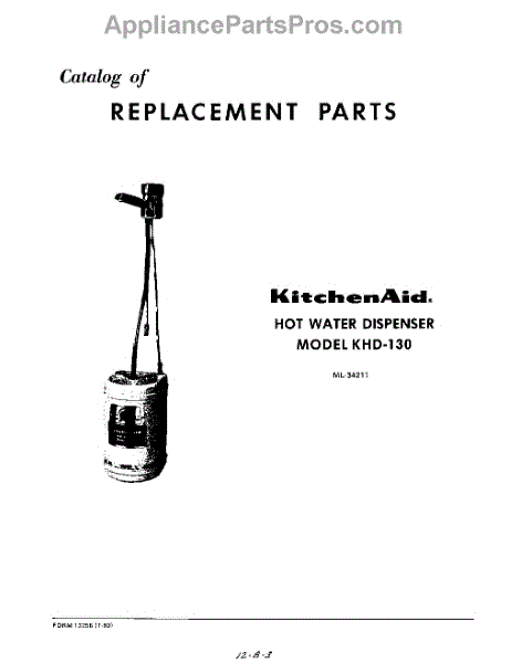 Parts for Kitchenaid KHD130: 01 - Section Parts