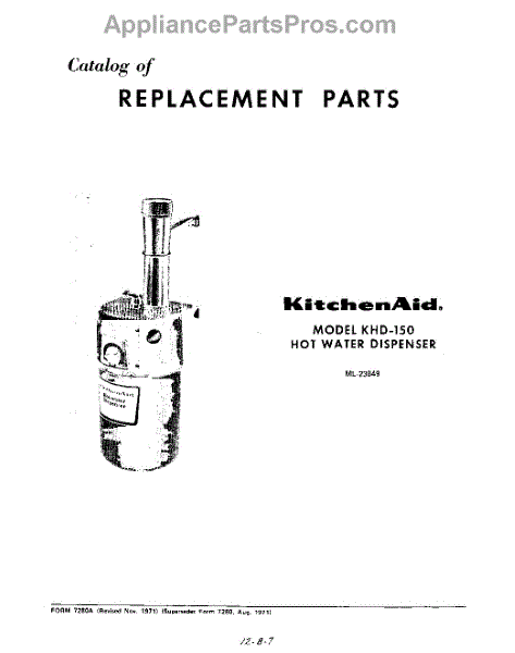 Parts for Kitchenaid KHD150: 01 - Section Parts