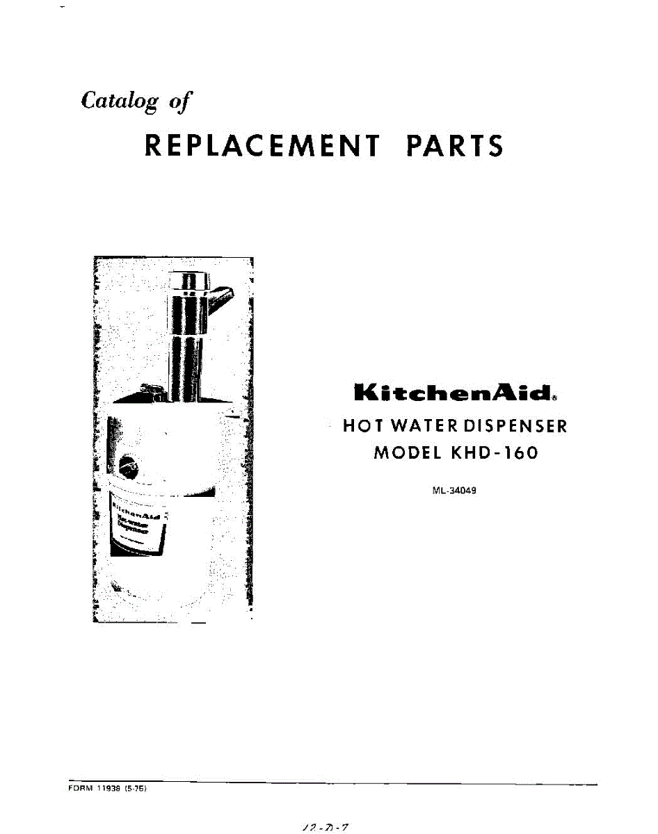 Parts for Kitchenaid KHD160: 01 - Section Parts
