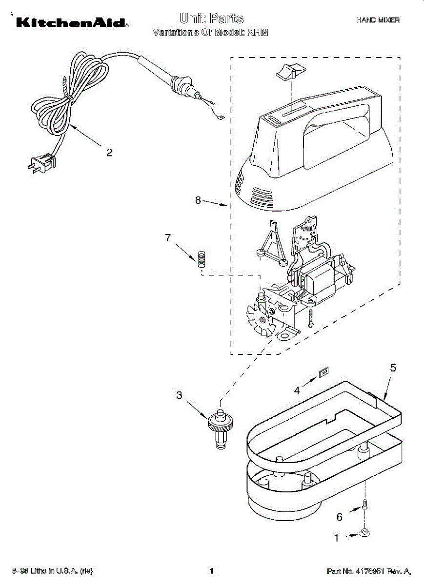 Parts for Kitchenaid KHM: 01 - Section Parts