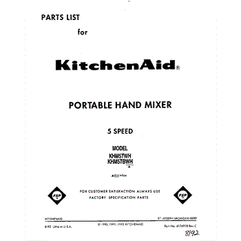 Parts for Kitchenaid KHM5TWH: 01 - Section Parts