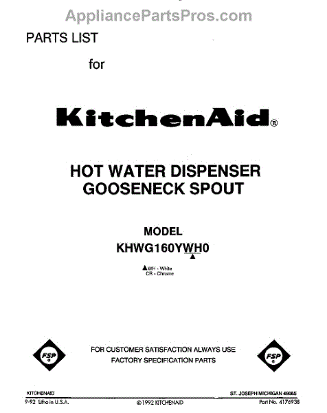 Parts for KHWG160YWH0