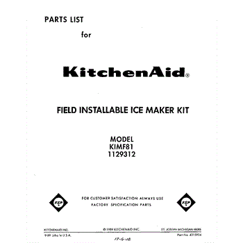 Parts for Kitchenaid KIMF81: 01 - Section Parts