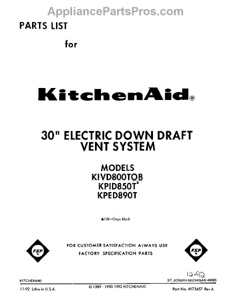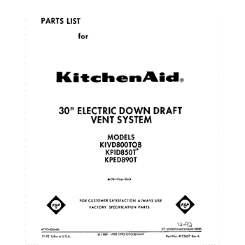 Parts for KIVD800TOB