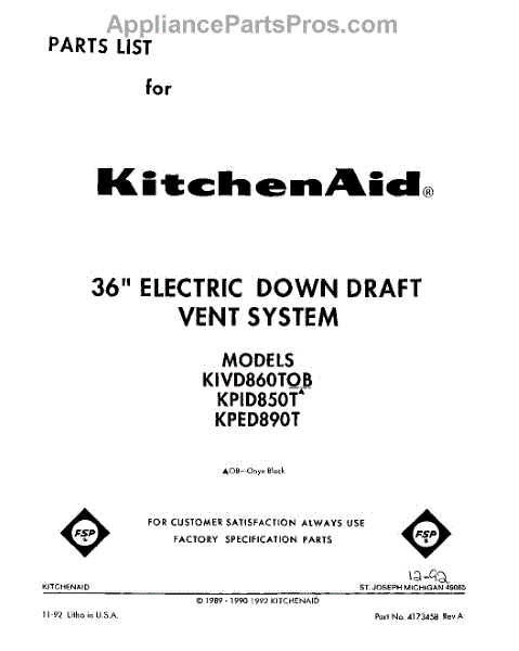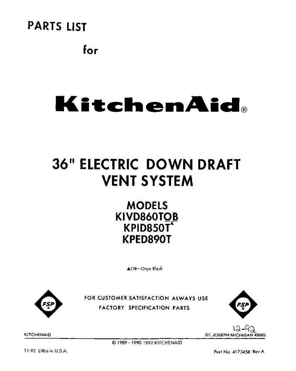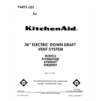 Parts for Kitchenaid KIVD860TOB: 01 - Section Parts