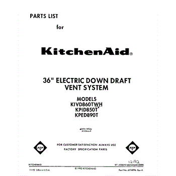 Parts for Kitchenaid KIVD860TWH: 01 - Section Parts