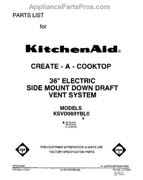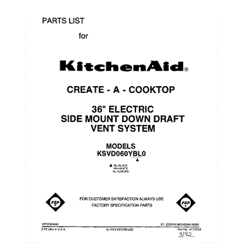 Parts for Kitchenaid KSVD060YAL0: 01 - Section Parts