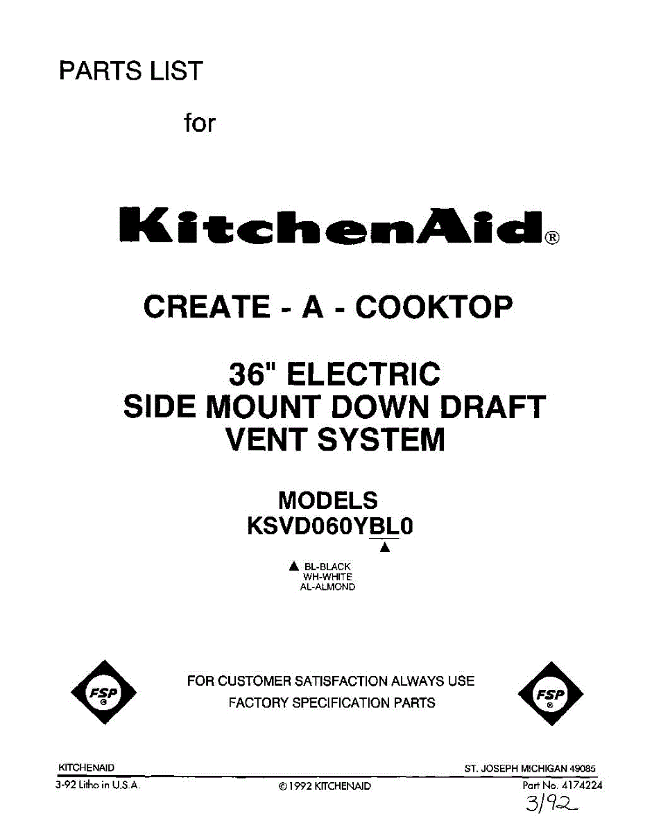 Parts for Kitchenaid KSVD060YBL0: 01 - Section Parts