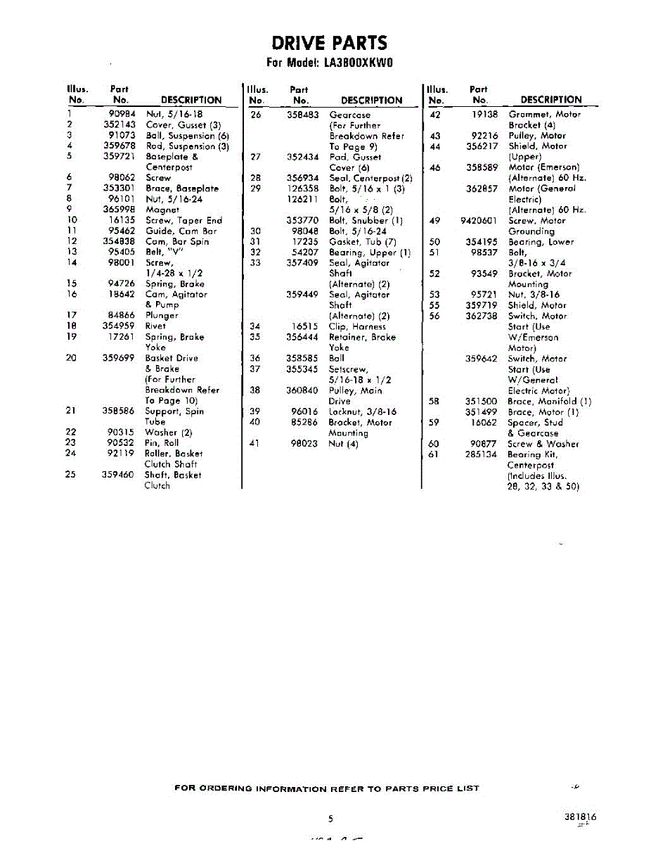 Parts for Whirlpool LA3800XKW0: 05 - Section Parts