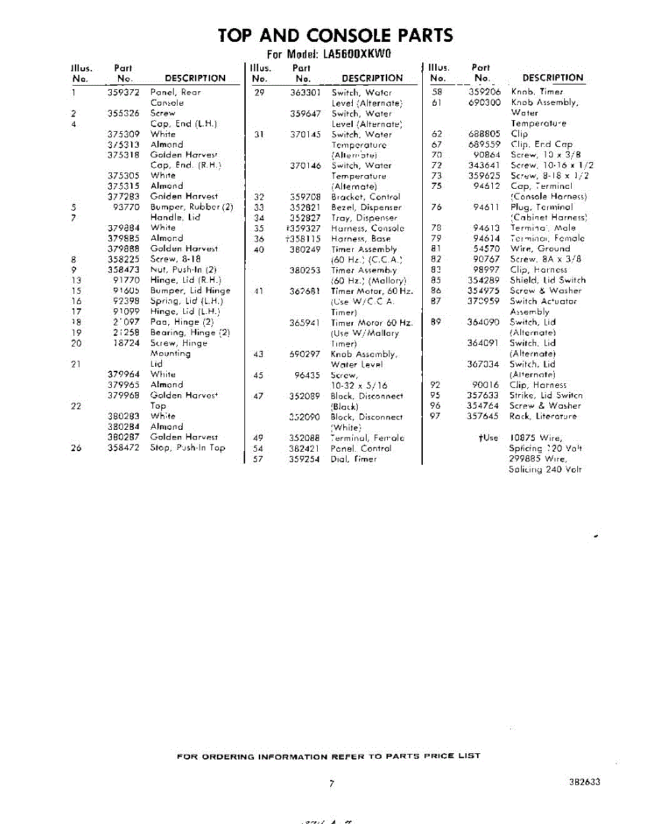Parts for Whirlpool LA5600XKW0: 07 - Section Parts