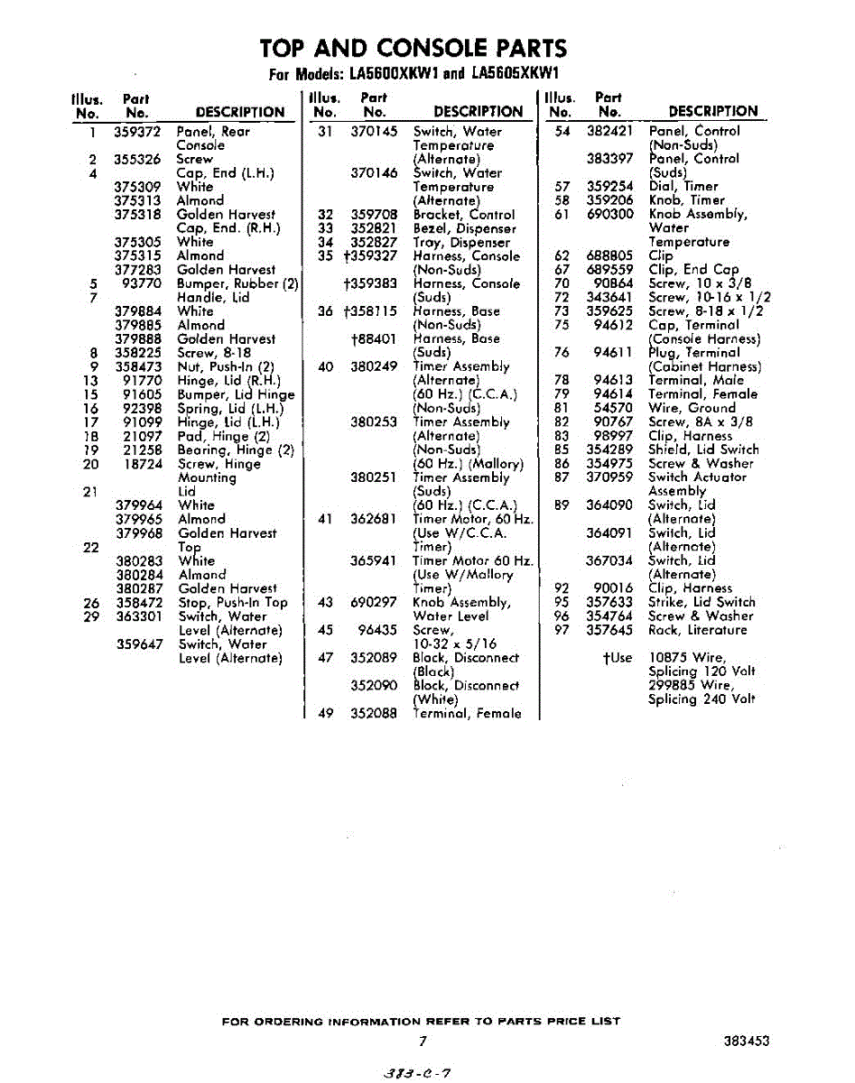 Parts for Whirlpool LA5600XKW1: 07 - Section Parts