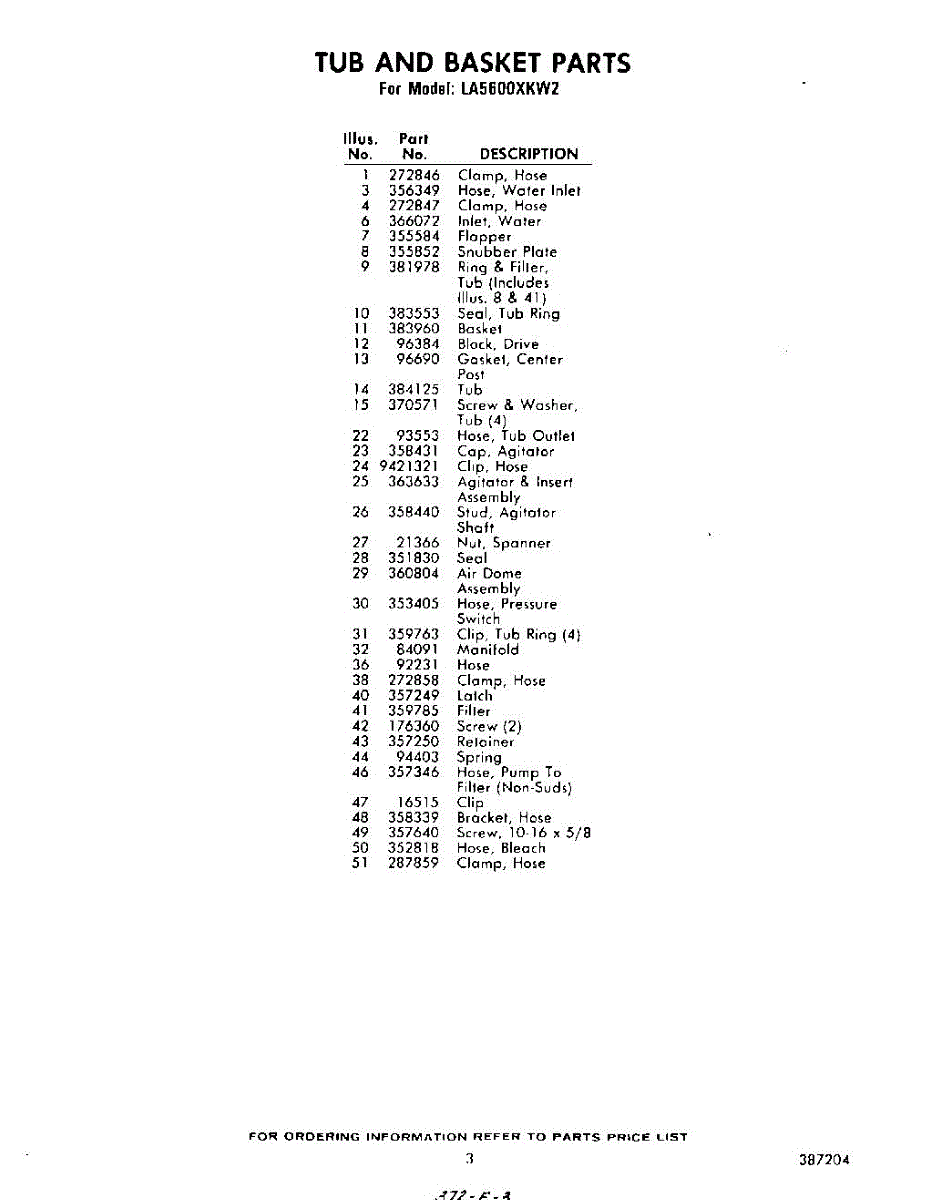 Parts for Whirlpool LA5600XKW2: 03 - Section Parts