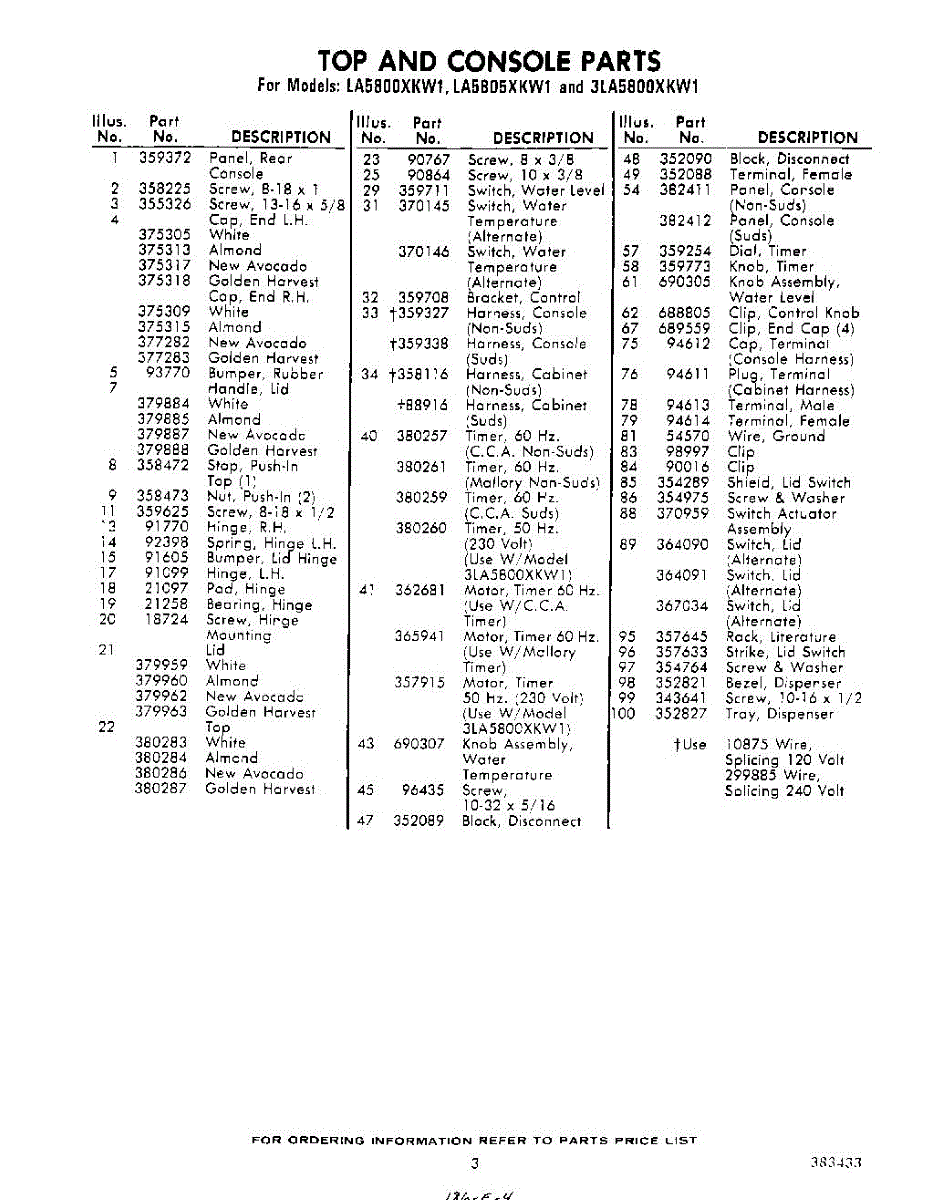 Parts for Whirlpool LA5805XKW1: 03 - Section Parts