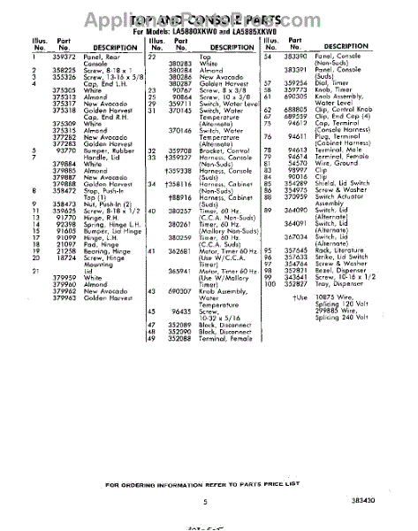 Parts for Whirlpool LA5880XKW0: 05 - Section Parts