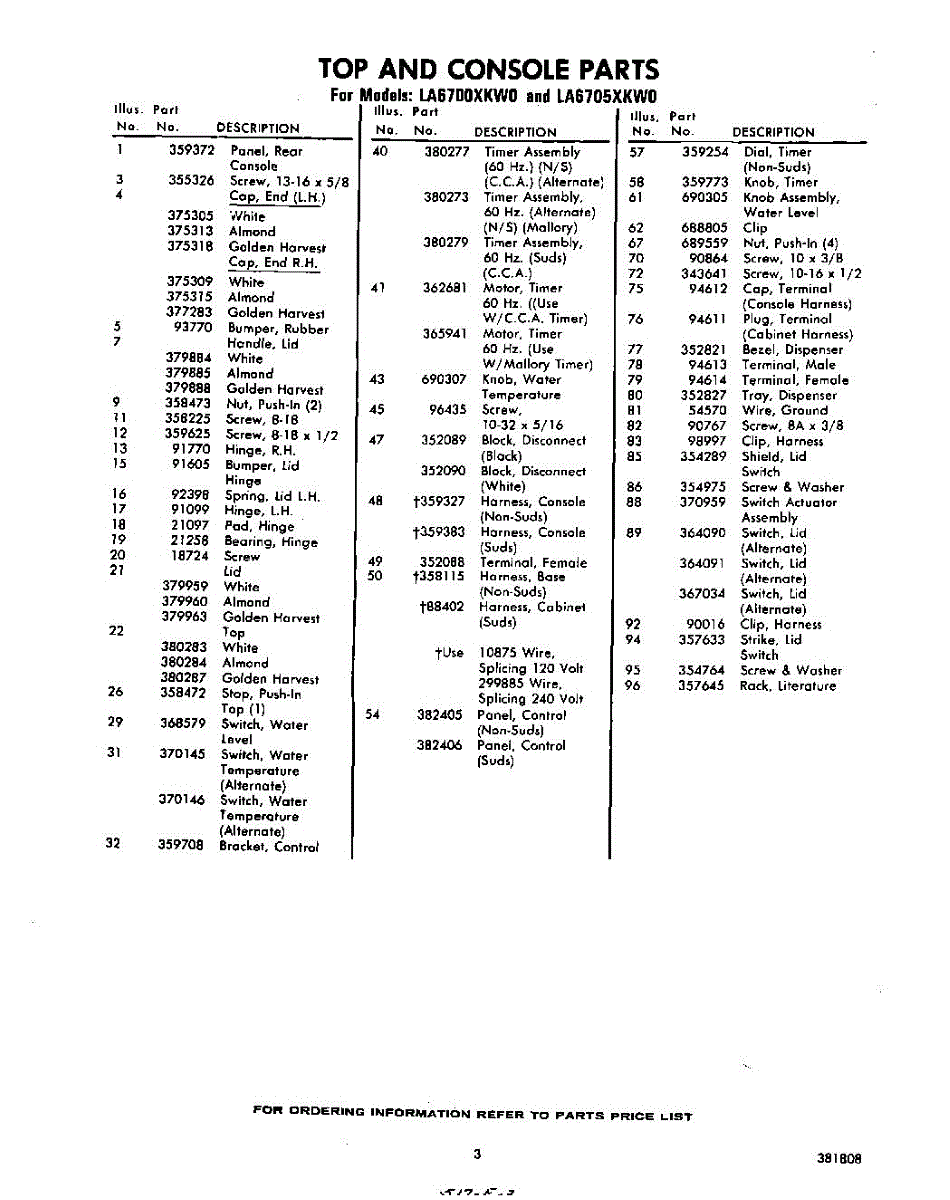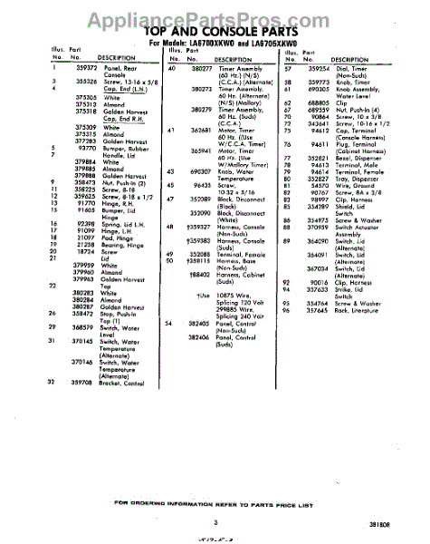 Parts for Whirlpool LA6705XKW0: 03 - Section Parts