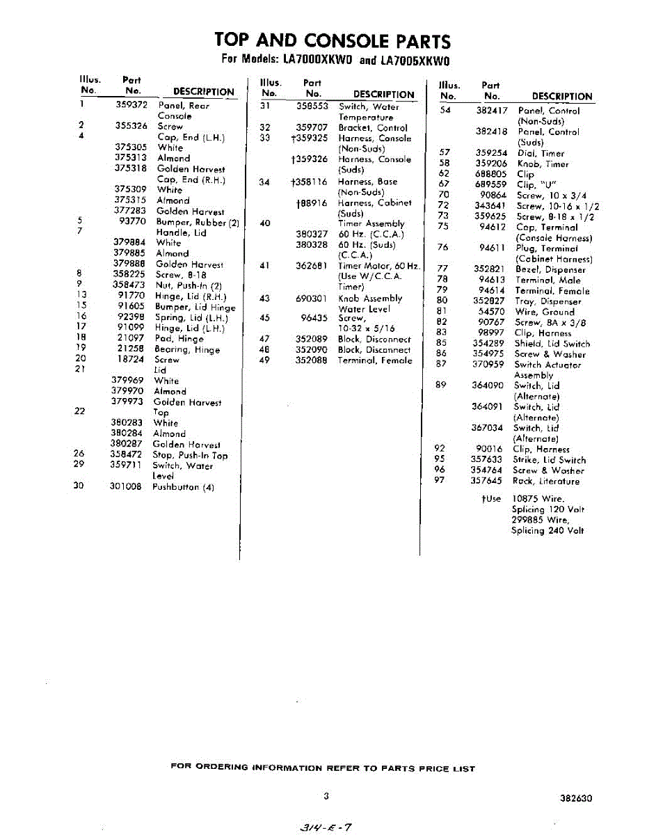 Parts for Whirlpool LA7005XKW0: 03 - Section Parts