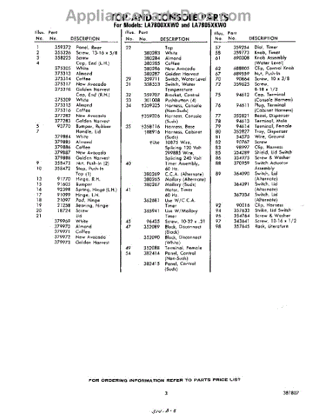 Parts for Whirlpool LA7800XKW0: 03 - Section Parts