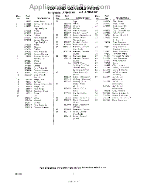 Parts for Whirlpool LA7805XKW1: 03 - Section Parts