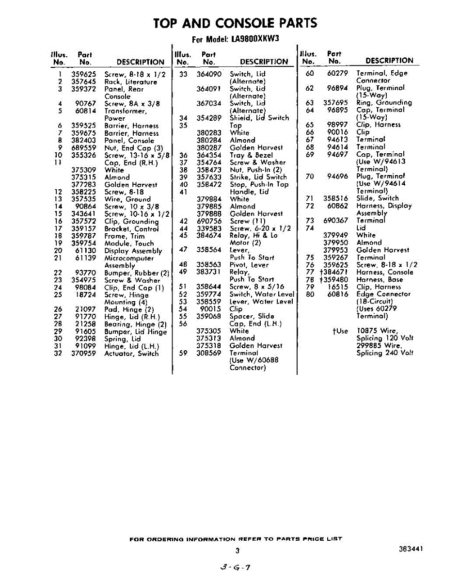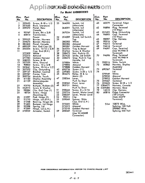 Parts for Whirlpool LA9800XKW3: 03 - Section Parts