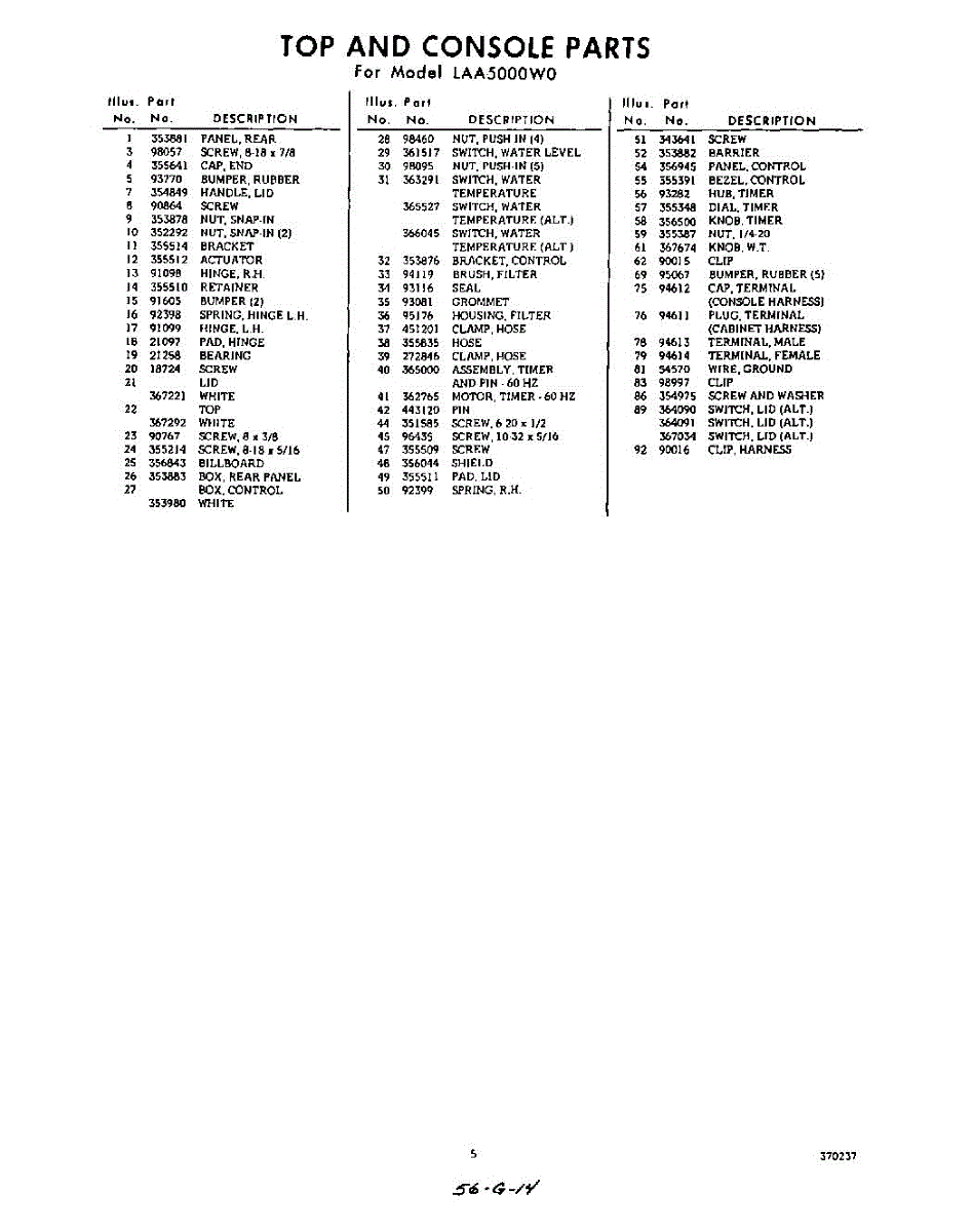 Parts for Whirlpool LAA5000W0: 05 - Section Parts