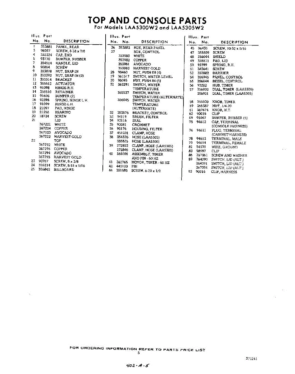 Parts for Whirlpool LAA5300W2: 05 - Section Parts