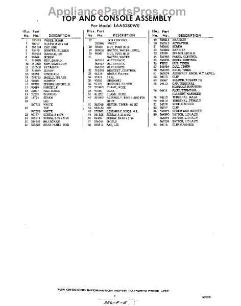 Parts for Whirlpool LAA5380W0: 05 - Section Parts