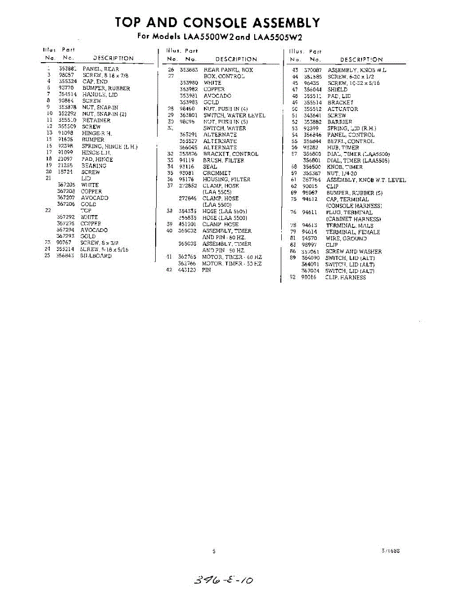 Parts for Whirlpool LAA5505W2: 05 - Section Parts