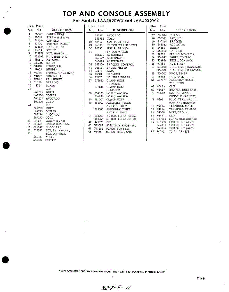 Parts for Whirlpool LAA5525W2: 05 - Section Parts