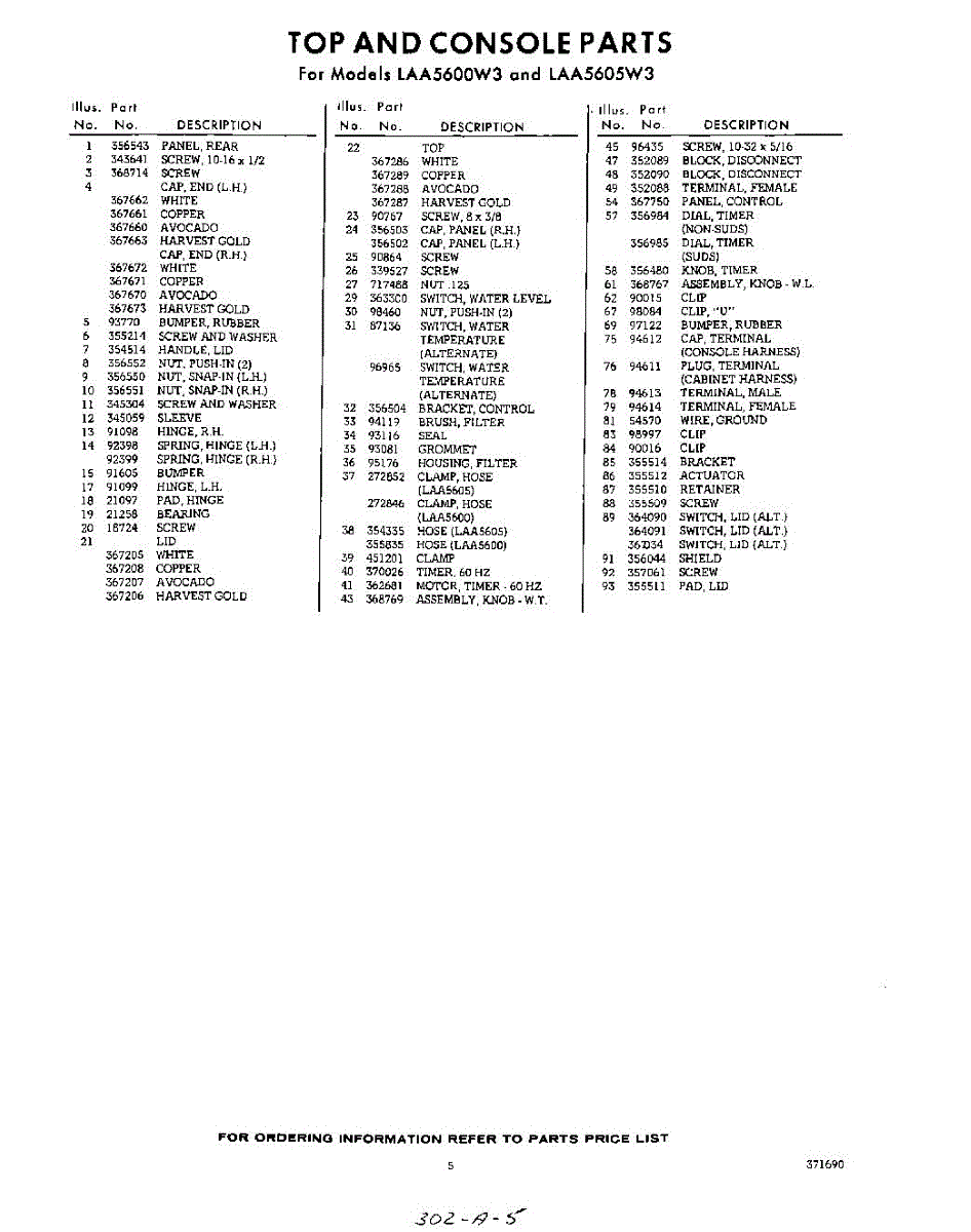 Parts for Whirlpool LAA5605W3: 05 - Section Parts